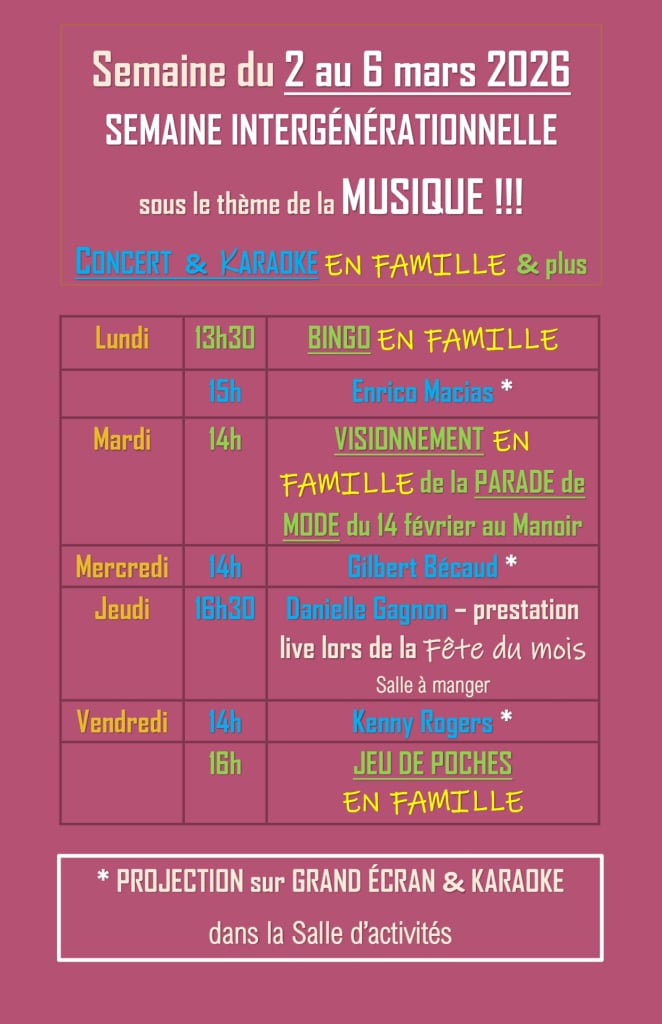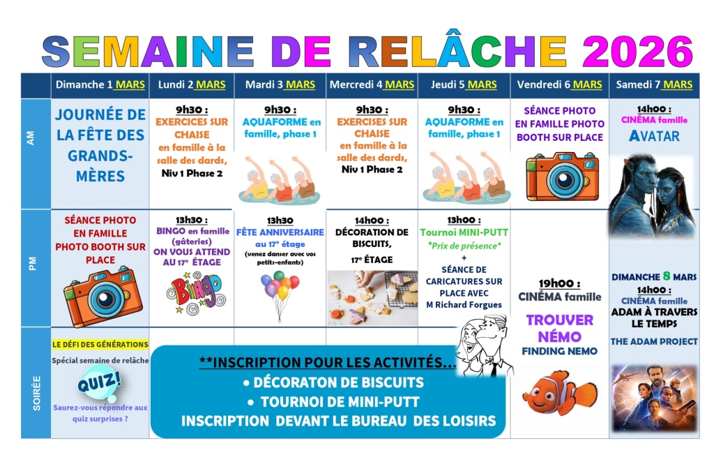 À vos agendas ! C’est la Semaine de relâche intergénérationnelle